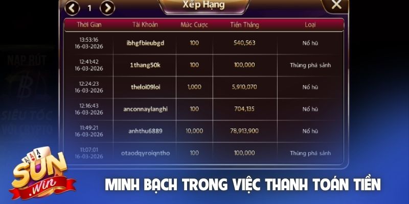 Sunwin minh bạch trong việc thanh toán tiền thưởng